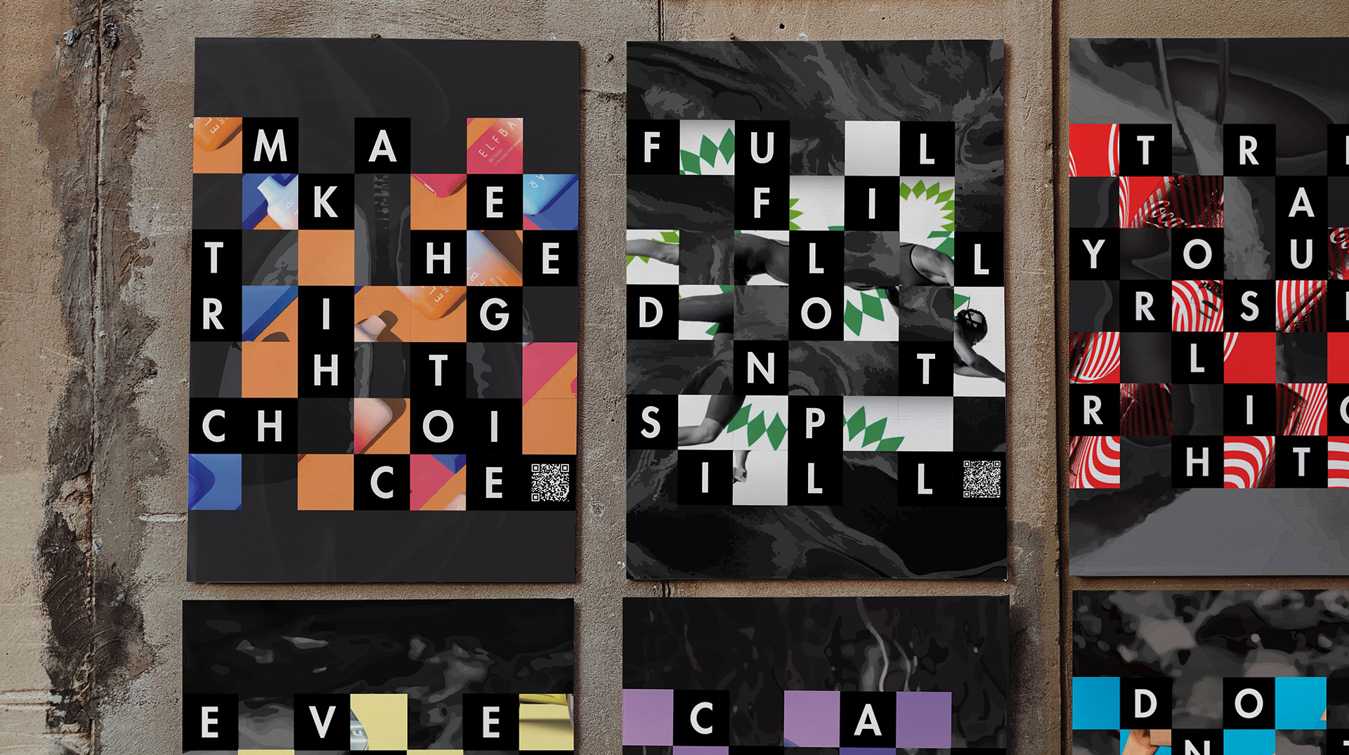 Make Good is a project focused on getting word out for various issues. Each poster breaks down an ad for something harmful to either personal well being or the world in some way, with a message interspersed as well as a spot for a helpful resource in the form of a qr code. 3 of the posters are focused on global issues, mostly concerning the health of the environment, which companies have adversely affected, and the other 3 are more personal health related.